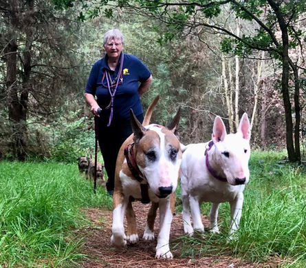 We received a call from a vet, asking us if we could take in an old lad of about 9 years old; he had been handed in by the police after his owner (of a few months) went to jail. He’d been in Police kennels for a while, before being handed to the vets as he had an eye trauma. One of our local fosters (our secretary in-fact) said for the vets to bring him over as soon as possible and Rita welcomed this old boy into her home that very same evening. The vets had called him Cass, not that he responded to that at all, but his tail wagged frantically whenever he heard the name ‘Chris’(which was Rita’s colleagues name) - it was clear that he loved that name, so, that was that - he was to be called Chris! We had been told he wasn’t good with other dogs, especially smaller ones, but he soon settled in with his new siblings and became particularly close to Esmeralda (Rita’s old girl). Chris suffered with separation anxiety and barked consistently, but he always stopped the second he was with someone, anyone, as long as he wasn’t on his own. It turns out that this gorgeous lad had been passed from pillar to post over the previous year, so it was no wonder he was nervous and barked constantly whenever he was left on his own, even if you were in the next room! After his assessment, it was clear that he’d benefit from a home with someone who would be home during the day, and possibly one where there was another dog in the home too, as he was so fond of being with Esmeralda. Chris was an adorable old gentleman, who adored his early morning walks, he followed Rita around all day and couldn’t wait for the evening when he could snuggle up on the sofa. Rita wanted to keep Chris forever, but, having an entire male at home already, we knew that wasn’t an option; Chris needed a home where he’s be completely spoilt with a hareem of ladies all around him – then along came his guardian angel, Naomi! A seasoned rescuer, Naomi has already rescued a Bull Terrier from us a few years before; the beautiful, Lizzie! Another Golden Oldie, who was lucky enough to have found her forever home with Naomi. Naomi also has 2 rescue Border Terriers and it all seemed a perfect match, although we were a little cautious as we were told Chris wasn’t good with smaller dogs (in his assessment he showed no interest in small dogs at all). It was agreed that Chris would go and have a trial with Naomi and her girls, so she made the long journey to come and collect Chris. Chris loved Naomi instantly, and off he went to live in his new home. Rita shed many a tear as she waved them all off, but she knew it was the absolute best outcome for Chris, and that was more important than anything else. Chris settled in quickly with Naomi, who took it introducing Chris to the ladies of the house very slowly, doing everything within her power to introduce them all considerately and carefully – ensuring that all of the dogs were happy and comfortable, every step of the way. After a short time, it was clear that Chris adored his new family and felt more and more at peace with life and his separation anxiety started to fade away gradually over time. Naomi shares regular pictures with us all and our hearts melt at every single one of them. As for Chris not being good with smaller dogs, well, it just goes to show that an ol’dog can be taught new tricks!! Chris adores his small terrier sisters and has no separation anxiety at all now! This gorgeous ‘Golden Oldie’ is extremely happy with his new life and we couldn’t be happier for him! If you feel you could give a Bull Terrier in need, whether you’re looking for a younger dog or a Golden Oldie, their forever home then please do contact us and we’ll do our best to ensure a perfect match is found for you, and for the Bull Terriers that The Bull Terrier Club (UK) Welfare Trust care for. ***************************************************************************** Adopting Golden Oldies – written by Naomi Kerans My love for bull terriers took off in the early 80’s when I was working in America and I lived near the well-known breeder Winkie Mackay-Smith. I decided to get my own Bullie and that;s when ‘Samson’ came into my life, he was a red Bullie pup with a soft temperament. He went on to become a great traveller as he would accompany me to horse shows out there, then in Europe & then later back in the UK. Samson had to come through quarantine back in those days! I had him together with a sweet, but very nutty little Bullie - Emma. After losing them both in the same year at 13 & 11, I got in touch with Bull Terrier Welfare - run by the Kenways back then. I adopted a little white girl believed to be 15, she was picked up as a city stray. She looked ancient and was full of battle scars - they said I should not be surprised if in fact she died anytime soon. (!) However, I hated to go home leaving her in kennels, so off we went to go and live life together. I think she conned us all as to her real age, because she lived on for another happy four years! Topsy was the first of several who came through Bull Terrier Welfare - the next couple were young but I always felt bad about the older dogs who end up in rescue. As I was getting older myself, I then opted for oldies who have, without exception, all been wonderful dogs. They have generally been strays - one sweet girl was with Battersea Dogs Home;she was found on an underground platform in London. Another old lad that I fostered for Welfare was found in a field, laying amongst with the cows- he was lying on their pile of trodden hay (for the warmth I guess). The Welfare Trust had named him Tiger, as he was a survivor! The weather that January was perishing & they thought he had been out wandering for some weeks! They had to carry him off that field, poor old chap, he stayed for a few weeks in a local kennels being fed many little meals a day and was lavished with love to help build him back up again. Another old lad was 